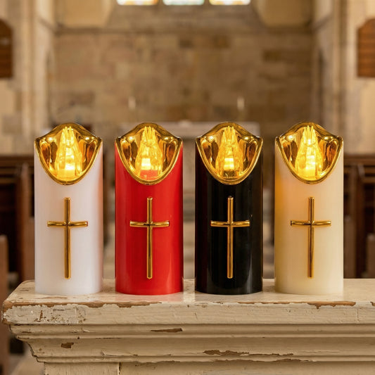 2 Pcs Flameless Pillar LED Candle with Gold Cross