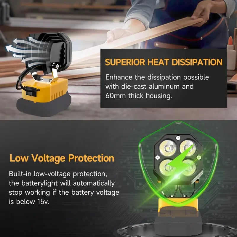 🔋 Compatible with Dewalt 18V/20V lithium batteries Works with DCB205, DCB206, DCB204, DCB203, DCB200, DCB201, etc. The battery-powered light is well-designed, snugly fits your battery, and is easy to install and remove. No batteries included.